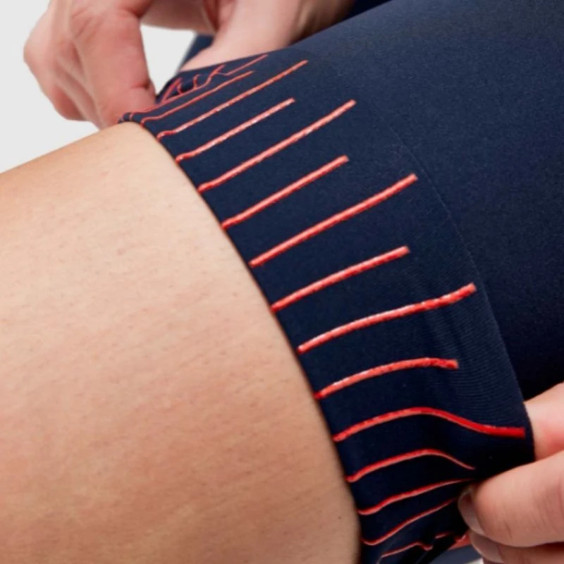 - Fondo gamba a taglio vivo con inserto in silicone per una maggiore aderenza;