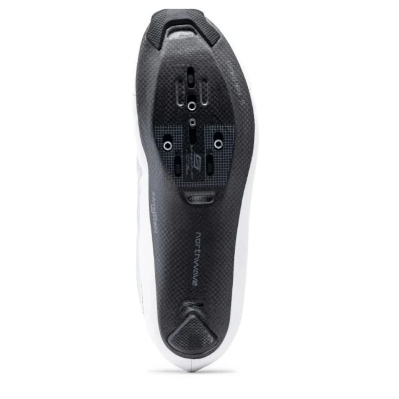 - Suola Powershape Carbon 15, 100% in carbonio unidirezionale con indice di rigidità 15 e sistema Powershape per supporto dell’arco plantare che assicura il trasferimento del 100% della forza al pedale.